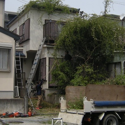- 近年、隣地との境界線を越えた枝の切落としを多く承ります。